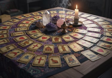 Consulta com cartas, tarot e búzios